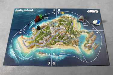 Part one is a hidden movement game where the shark player is roaming around the island trying to eat people while the other characters attempt to locate and tag the shark.