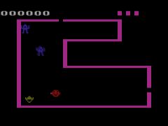 Berzerk 4/5 Still fun if a bit simple. Run around and shoot people. It's what the 2600 does well. I'm also impressed while they had lots of moving sprites, they didn't have the flicker. From the manual "The Astro Date is 3200 and you are the last survivor of a small group of earth people who came to explore the planet Mazeon." |